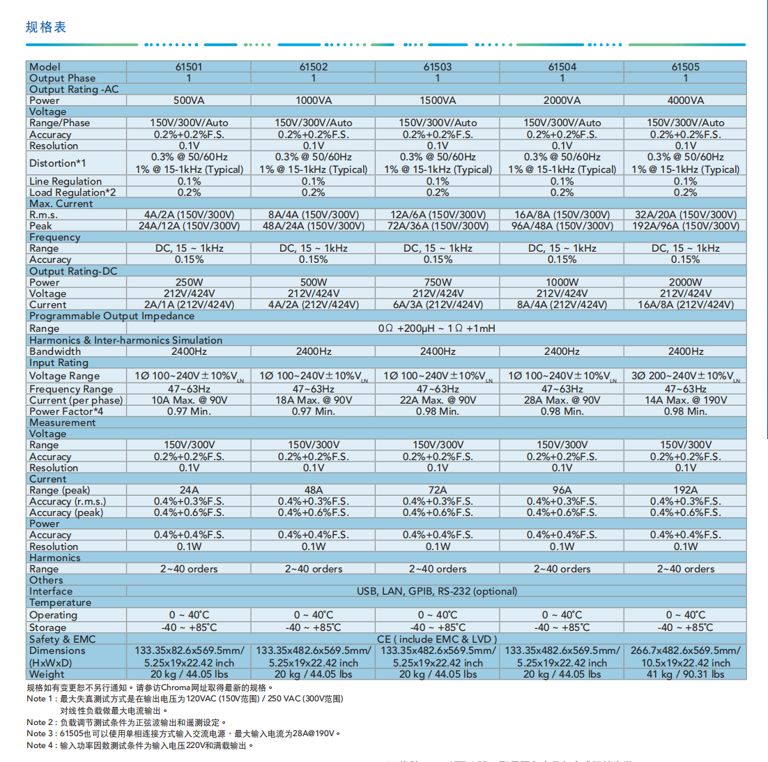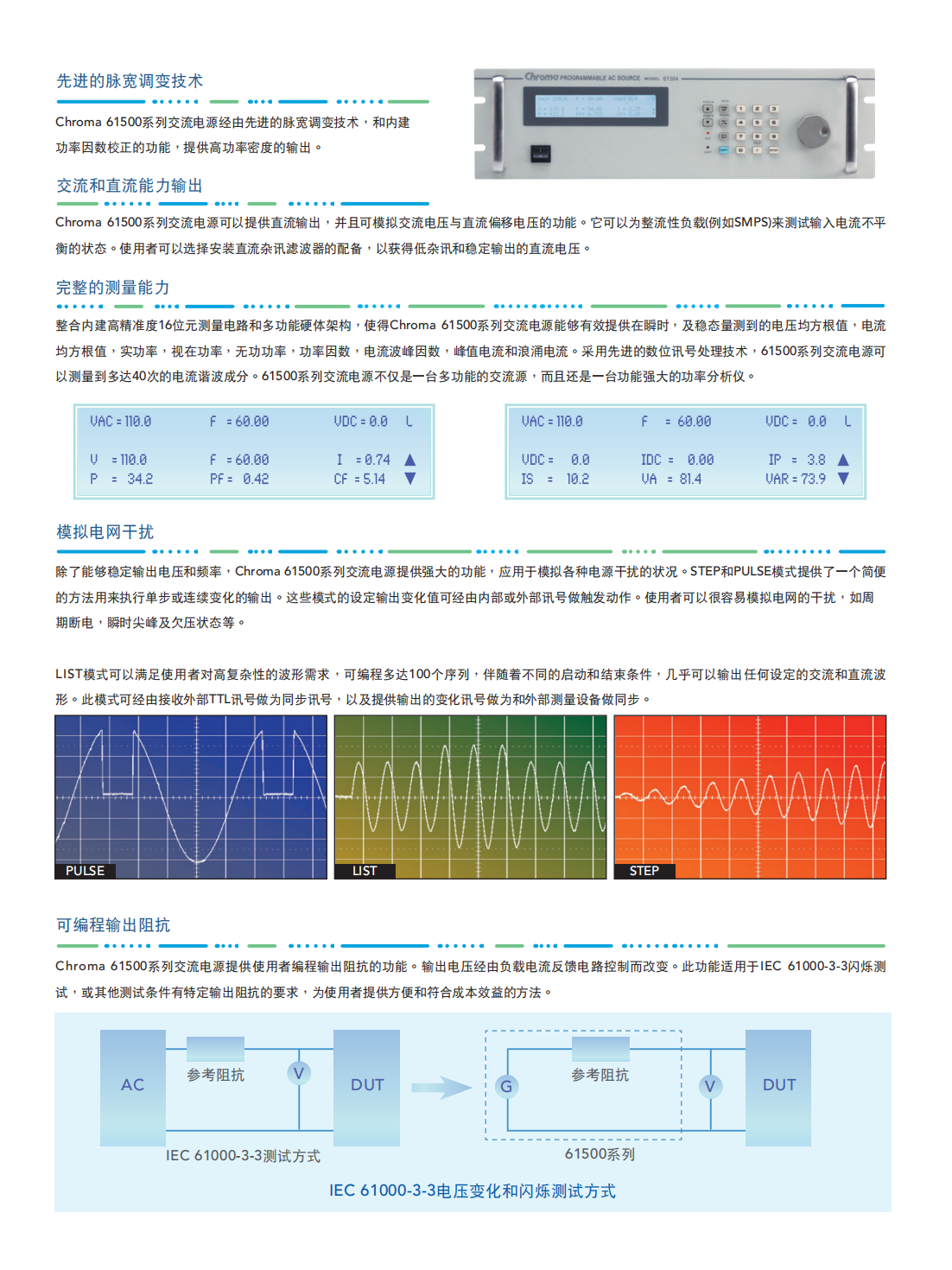 Chroma进阶可编程交流电源MODEL 61501/61502/61503/61504
