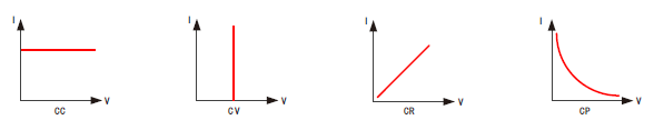 • 电子负载带载模式:CC、CV(部分型号不支持)、CR、CP四种测试模式;