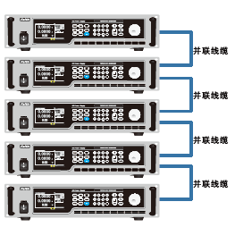 FTP电源最多支持10台电源的主从并联使用,大大扩展了电源的应用输出范围。并机功能除了使电源之间自动均载,保持输出值的一致,还保证了输出斜率曲线或者波形的一致。处于并联状态的主机,电源屏幕显示的是总电压、电流和功率值。每路从机自主均流,自动求和。