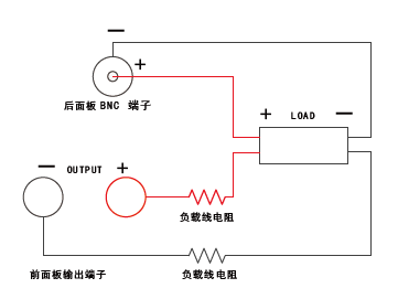 当负载消耗较大电流的时候,就会在电源到负载端子的连接线上产生压降,远端感应可以自动补偿负载线的压降。远端感应功能电源量测的接线示意图如下: