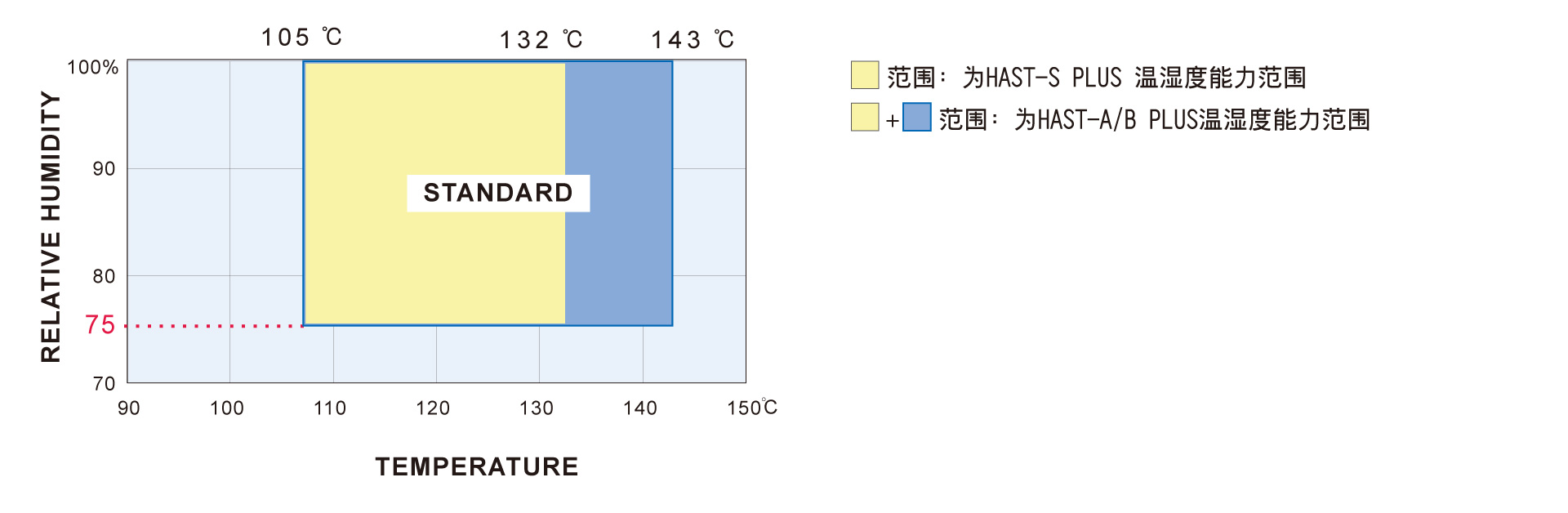 • 可满足IEC60068-2-66、JESDEC-A110、A118规范要求,3种控制模式包含:不饱和控制(乾湿球温度控制)、不饱和控制(升温温度控制)、湿润饱和控制。
