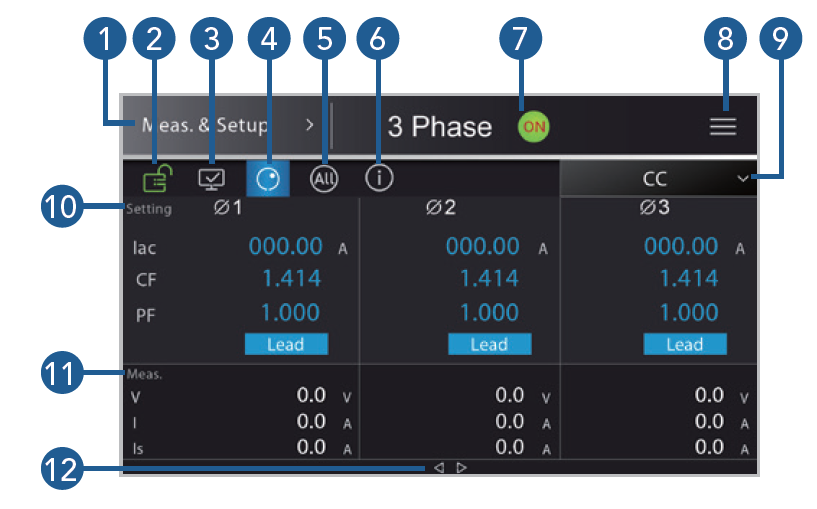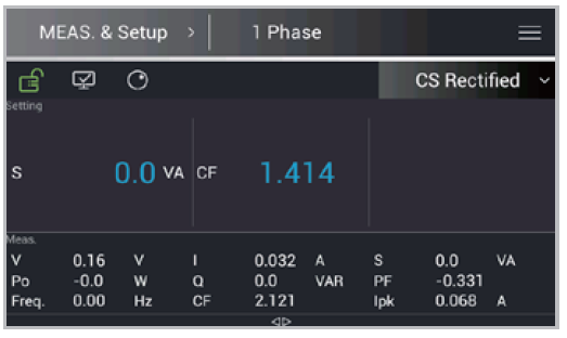 63800R系列能源回收式交流电子负载配备触控式操作萤幕,提供直观的UI介面让用户快速进行多项设定和操作。交流负载的进阶功能如拉载/卸载角度、拉载电流Slew Rate等设定,皆隐藏于右上角More Setting功能,使主设定画面简洁干净。而透过全屏模式,可将所有量测值扩展至全屏,适用于完成输入设定后的观察环节,提供用户更清楚的量测参数画面。