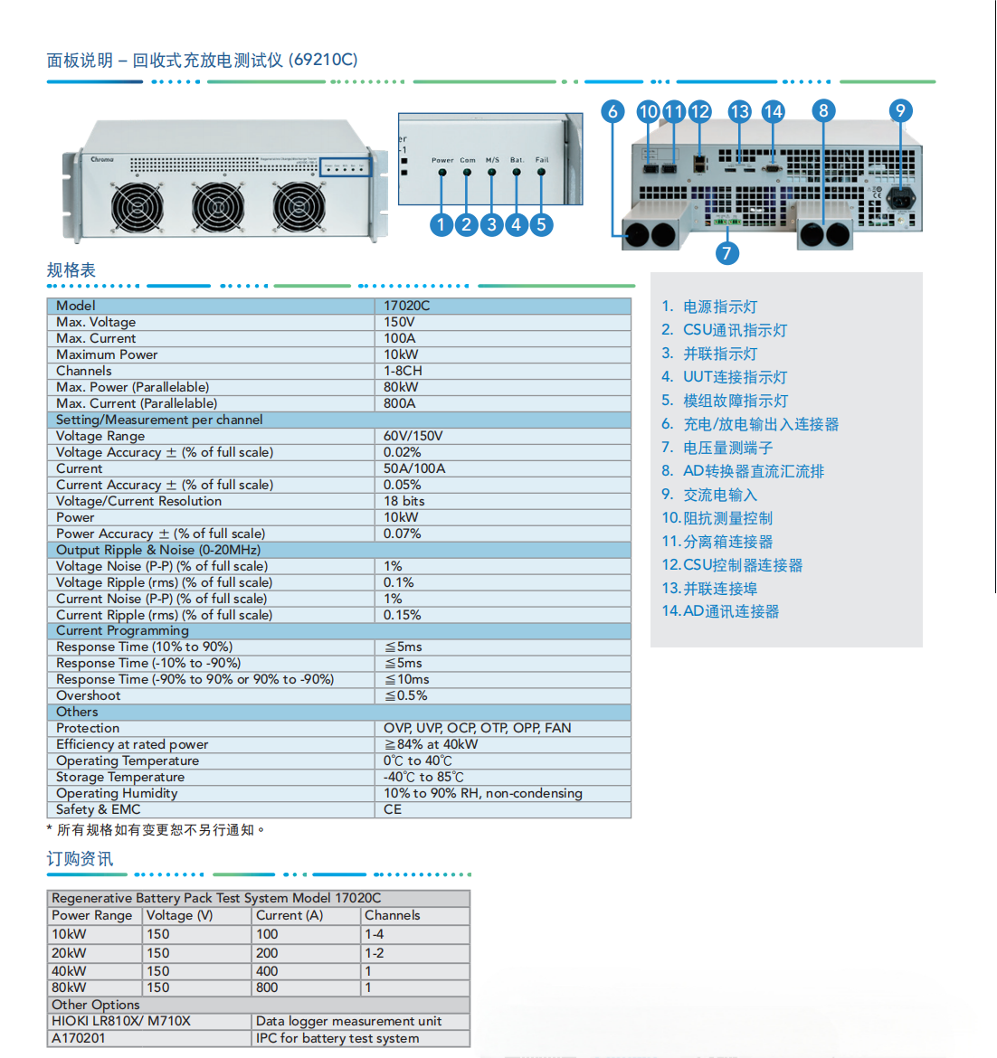 名  称:能源回收式电池模组测试系统MODEL 17020C