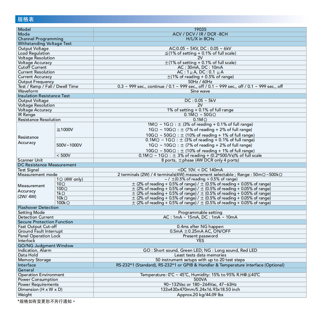 名  称:绕线元件安规扫描测试器MODEL 19035