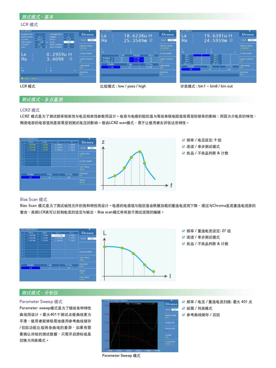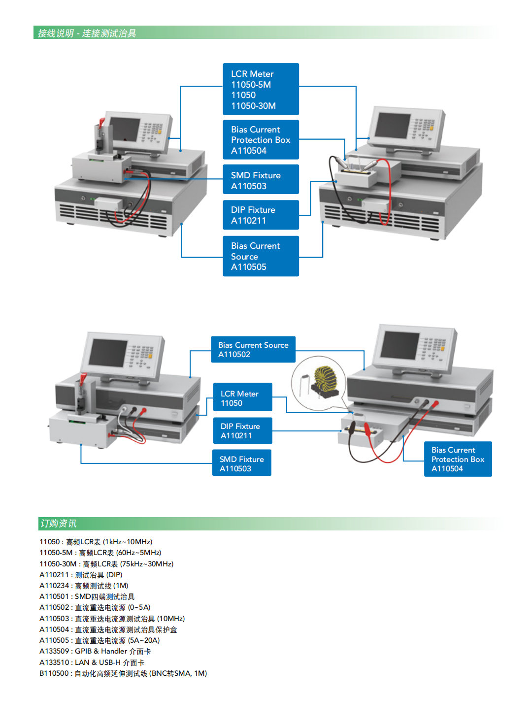 Chroma 11050系列高频LCR表为一提供被动元件量测评估解决方案,兼具精准与快速两大特色的精密测试仪器。量测项目涵盖电感、电容、电阻、品质因素、损耗因素等各种被动元件测试所需的主、副参数。