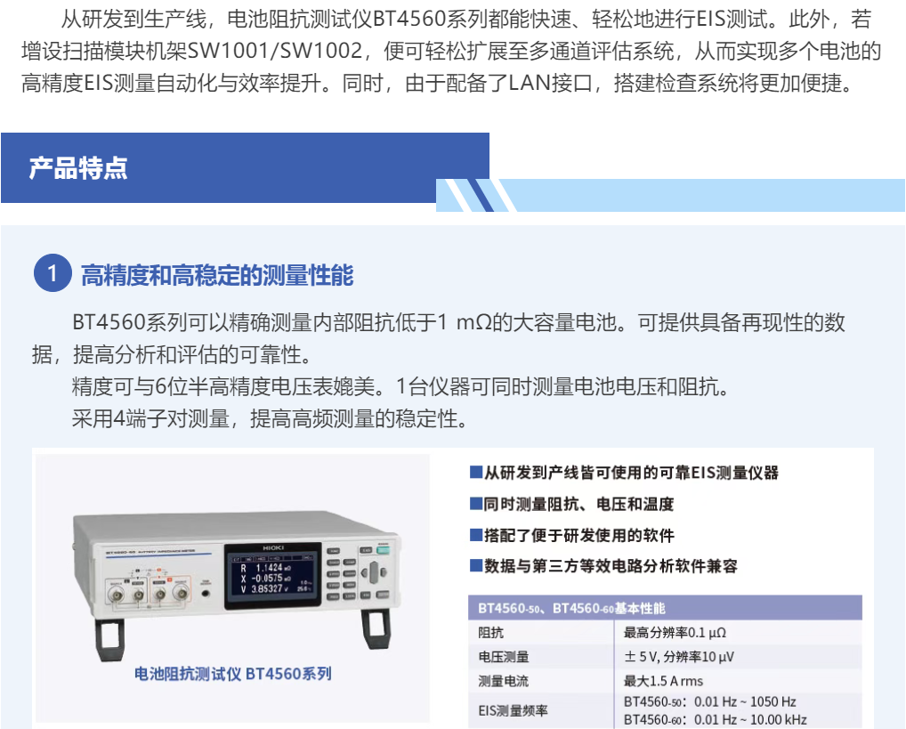 从研发到生产线,电池阻抗测试仪BT4560系列都能快速、轻松地进行EIS测试。
